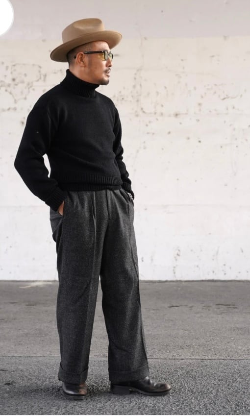 1930年代のヴィンテージアメリカンワークトラウザーを忠実に再現した製品です。生地は、しっかりとしたナイロンをブレンドしたウール生地を使用しています。ワークシルエットなので、ワークスタイルやバイカ―スタイルはもちろん、ドレスシーンにも幅広く活躍するアイテムになります。